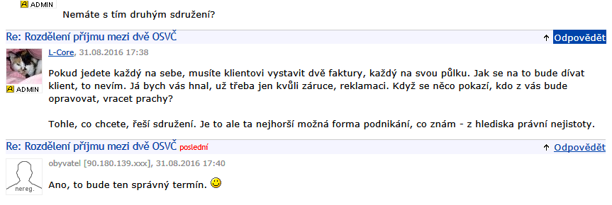 Takže ano, v mém případě se jedná, resp. bude jednat o sdružení.