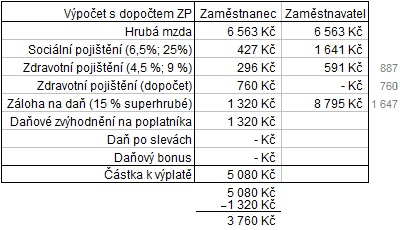 ZP mi u Vás vychází 296 Kč, dopočet ZP 760 Kč. Váš čistý příjem by měl činit 5.080 Kč