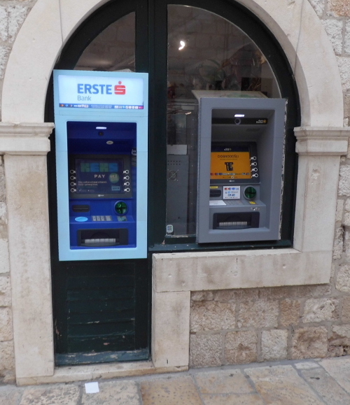 V Chorvatsku bohužel tyto manýry mají i bankovní bankomaty, poznal jsem tam řadu značek známých i u nás. I v případě odmítnutí si pak chtějí účtovat dodatečný poplatek, většinou ho nazývají "acces fee". Nechápu to, přece náklady na výběr hotovosti by měl pokrýt poplatek, který dostanou od mé banky (já to mám sice zadarmo, ale banka za mě musí něco zaplatit), nevím ,co navíc by měli chtít.